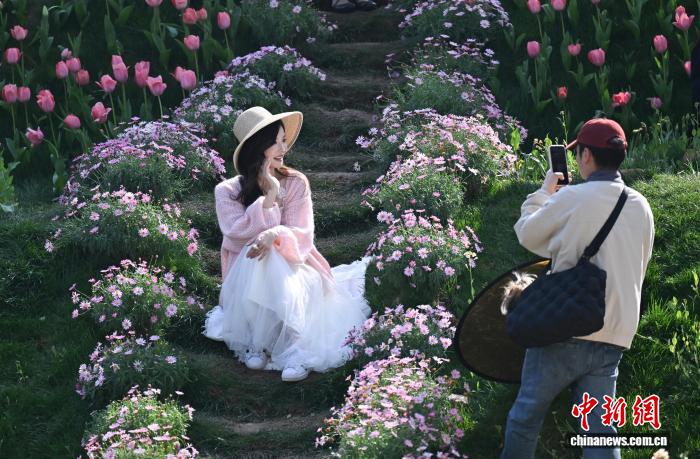 3月10日,游人正在唯好花境中摄影。中新社记者 王刚刚 摄