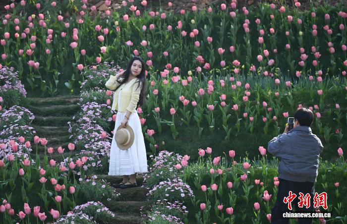 3月10日,游人正在唯好花境中摄影。中新社记者 王刚刚 摄