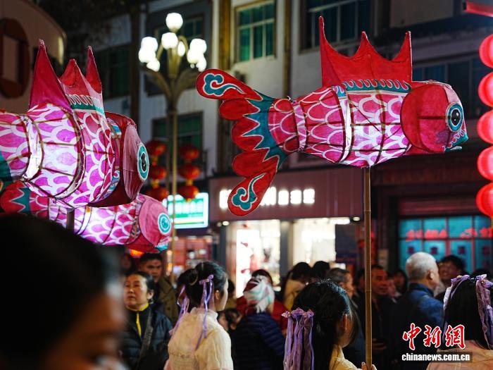 2月25日,贵州省黔西北苗族侗族自制州施秉县乡,公众正在旁观花车龙灯巡回铺演。当日早,2026年“骏马迎秋•乐游施秉”龙灯铺演举动落幕,36辆特点花车、20余条草把龙取明龙和特性风气圆阵,沿街巡回铺演,吸收浩繁市平易近战旅客同赏花车龙灯,同庆新秋。中新社记者 周燕玲 摄
